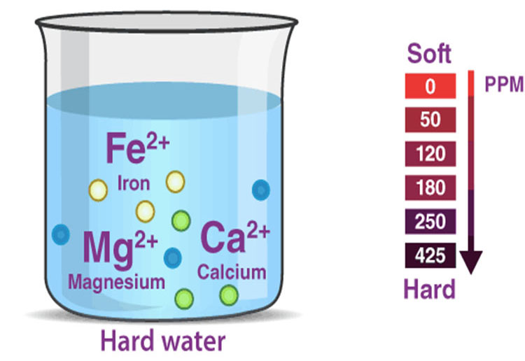 The hardness of water is the amount of salts dissolved in the water, namely the amount of calcium salt and magnesium salt. The higher content is harder and vice versa.